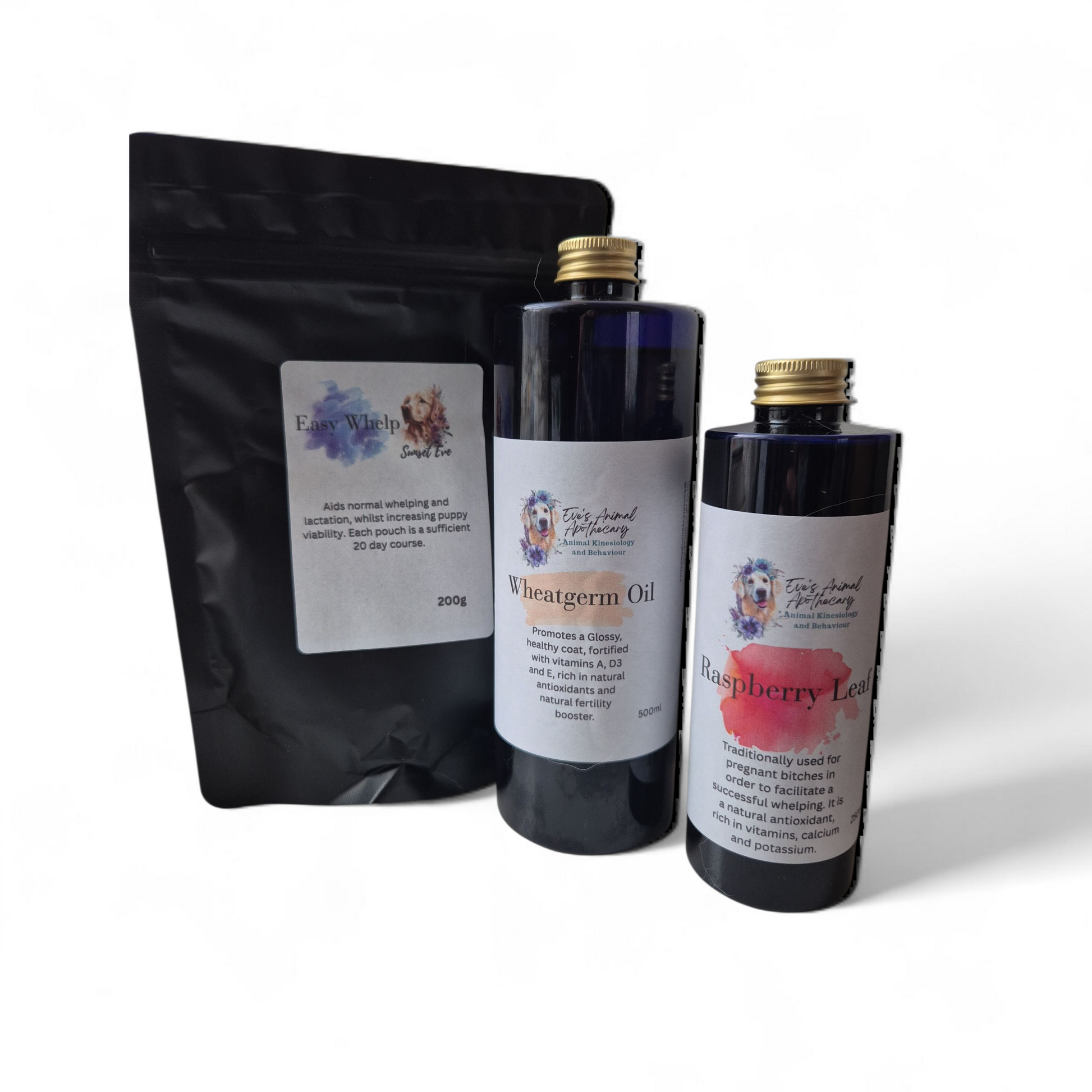 For a medium dog each bottle should last 1 month, and the Easy Whelp 200g is sufficient for each pregnancy. The pack is designed for full fertility benefits, before, during and after whelping.