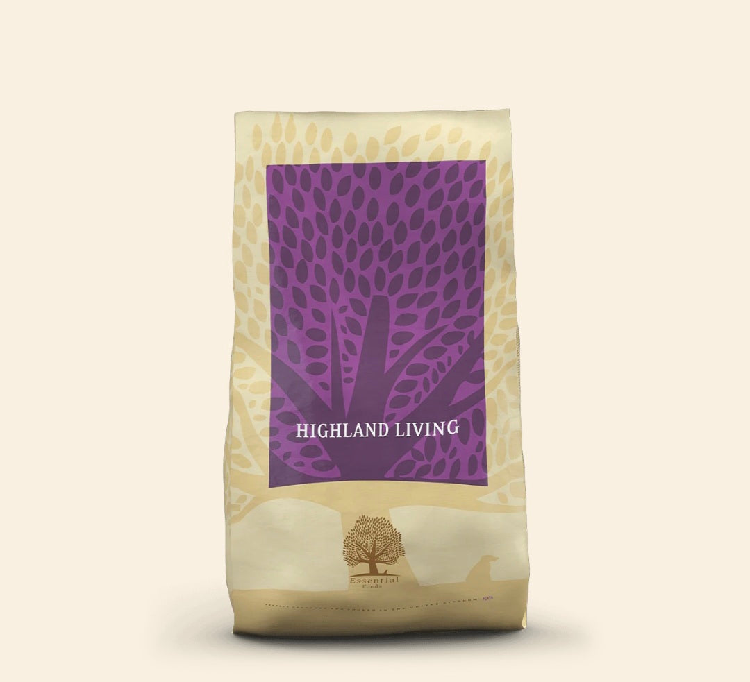 ESSENTIAL HIGHLAND LIVING is a complete and unique, grain-free meal inspired by the highlands of Scotland. It is prepared with masses of delicious local and regional ingredients such as Aberdeen Angus beef, pigeon, quail and, of course, Scottish salmon. Designed for a normal level of activity, ESSENTIAL HIGHLAND LIVING is an obvious choice of variation for you to serve together with our other LIVING meals. HIGHLAND LIVING complies with our BOF principle, aiming to keep your dog’s blood sugar levels stable while it savours the many tasty and healthy flavours from the Scottish Highlands.